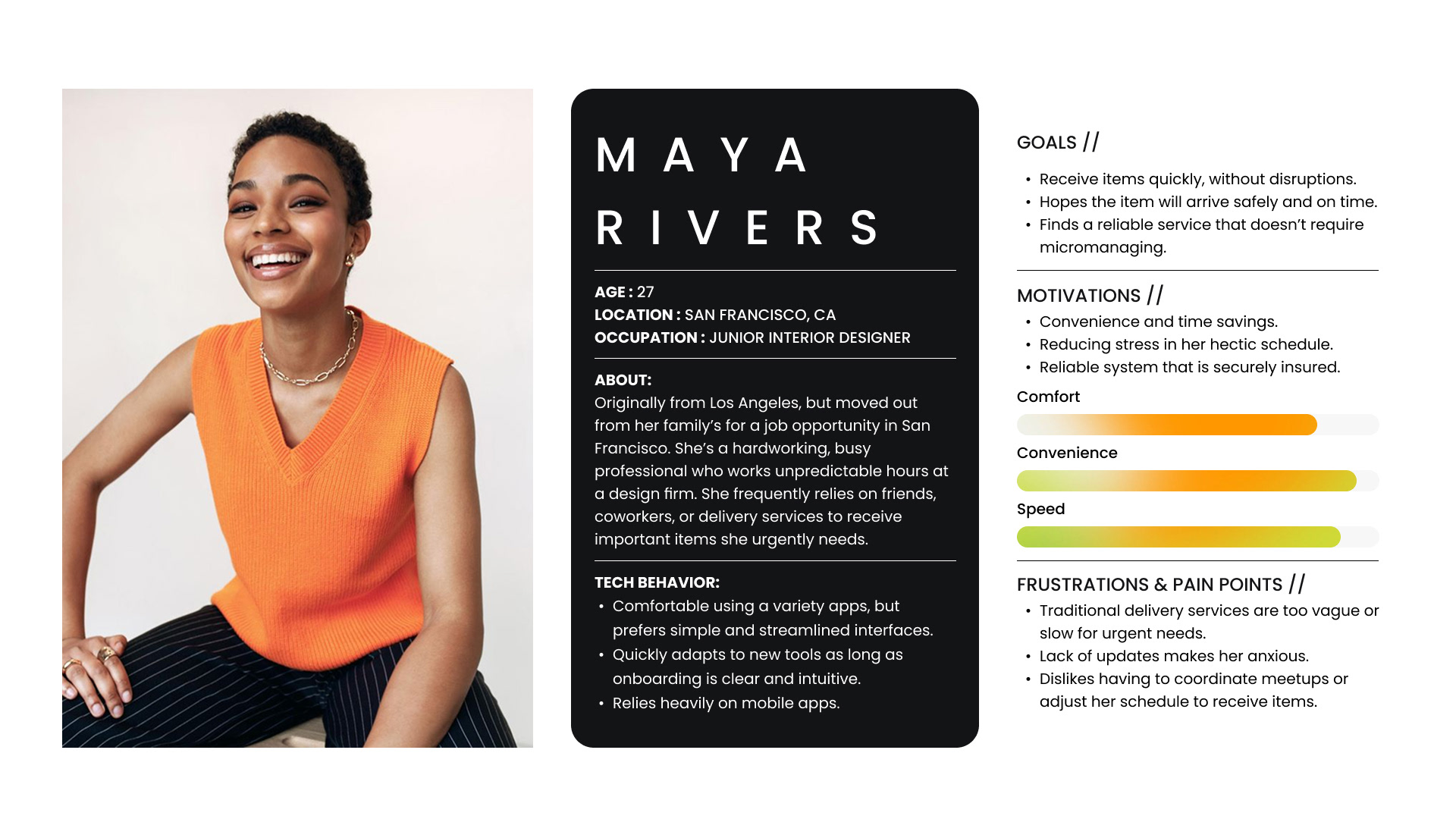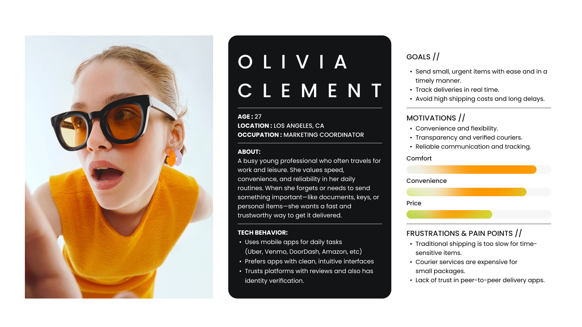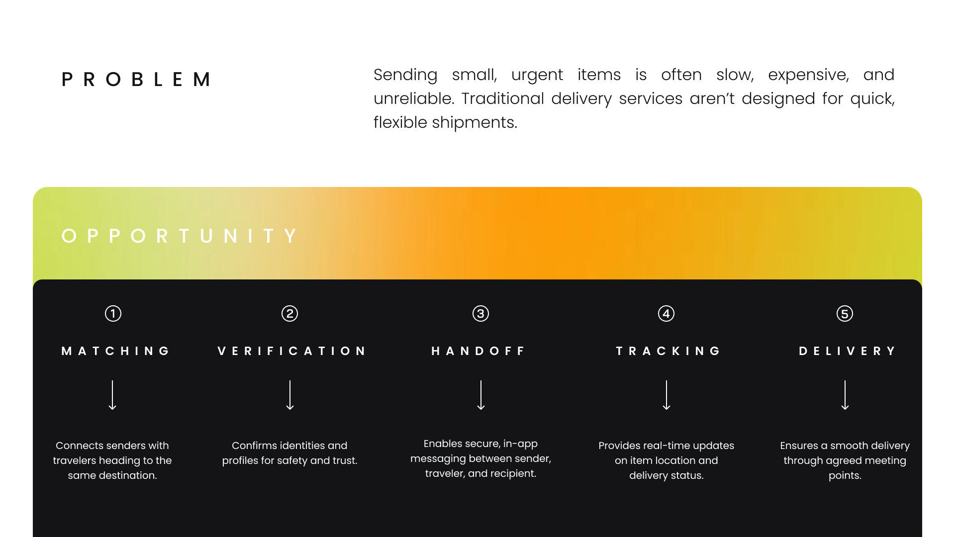 This project explores a peer-to-peer delivery app that connects travelers with people who need to send small, time-sensitive items. By leveraging existing travel routes and prioritizing trust, communication, and transparency, the app creates a faster and more accessible alternative to traditional delivery services.