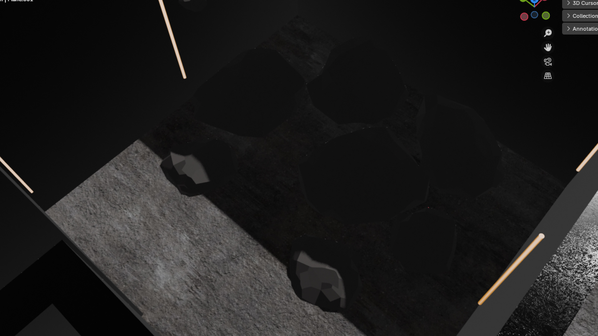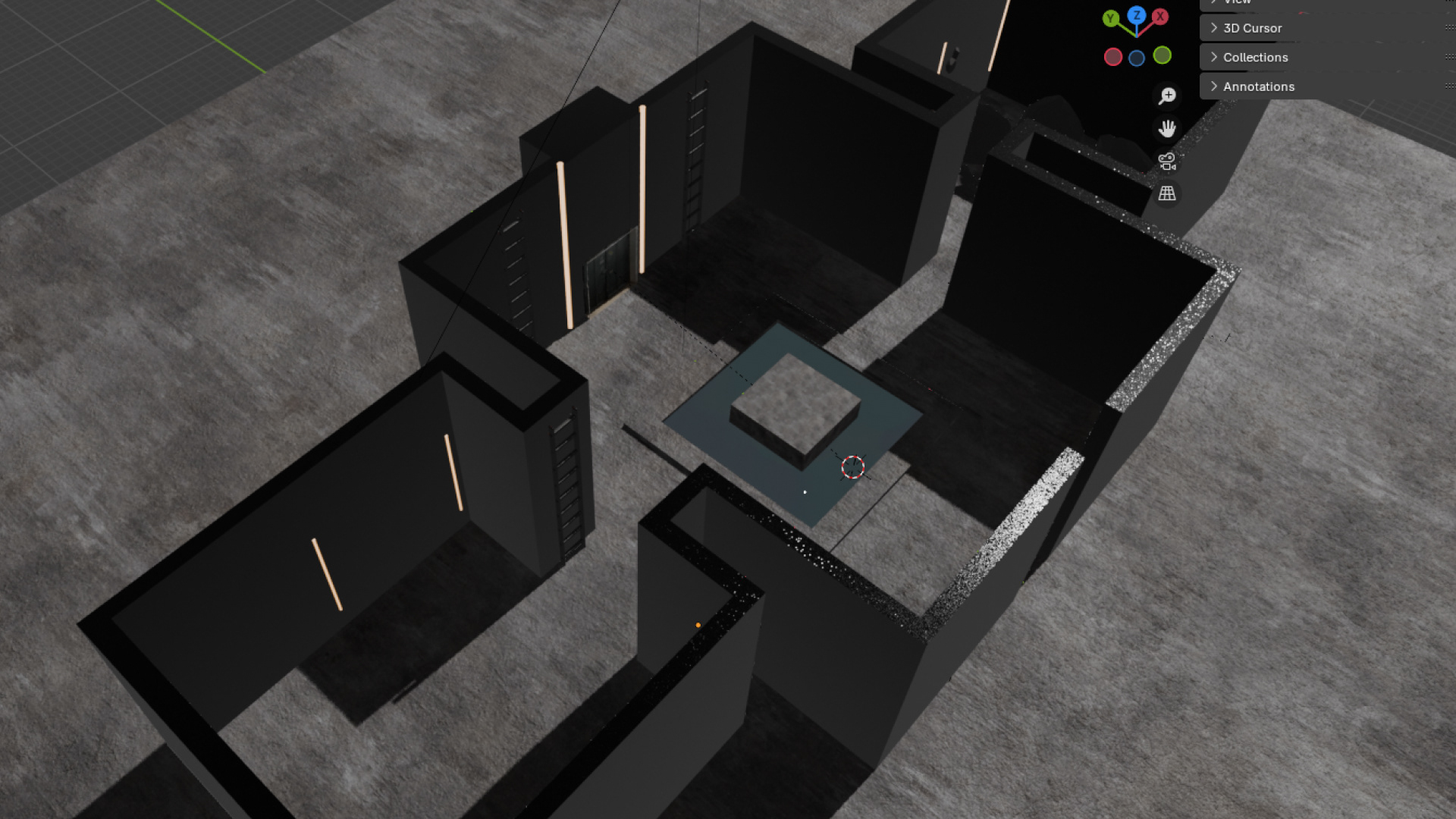 After identifying limitations within the initial floor plan wireframes, I moved the layout into Blender to further test and refine the exhibition design. Translating the plan into a three-dimensional space allowed me to identify spatial issues that were not fully visible in two dimensions.